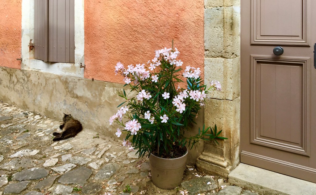 Comme on est toujours en rose pour le défi de Bernie, j’en profite pour mettre un souvenir de cet été et de mon retour aux sources landais. Ça fait du bien en cet automne plus que maussade. C’est un rose pâle, mais rose quand même, et puis il y a du soleil, des vieilles pierres et un chat, ça met de bonne humeur, non?