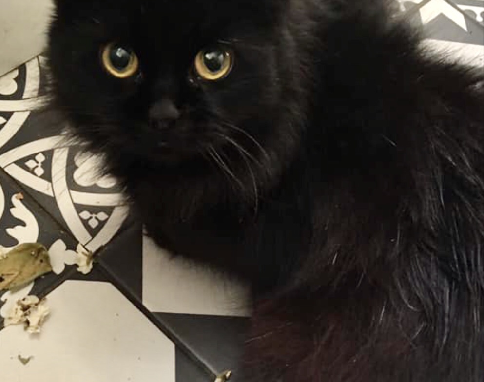 J’ai déjà! En plus, elle fait double emploi, chat noir et gremlin. Là, c’est la fois où elle a décidé de renverser et bouffer du pot pourri alors que sa gamelle était pleine.