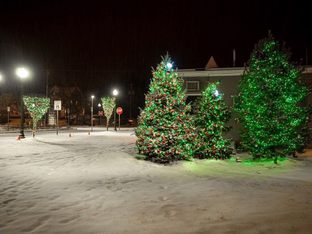 On repart à Berkeley Heights dans le New Jersey, avec les mêmes sapins qu’au jour un, mais sous la neige cette fois. Merci à Michusa d’avoir pensé à cet avant/après.