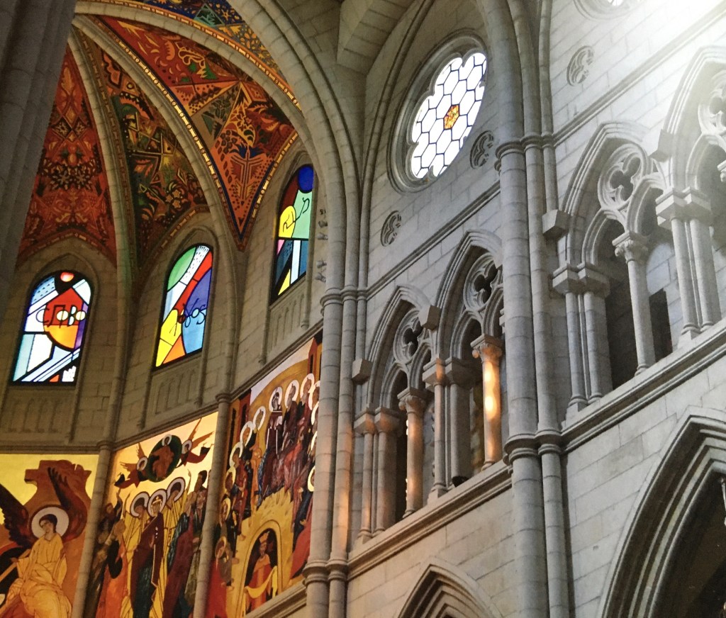 Le mélange d’influences est encore plus marqué à l’intérieur de la cathédrale. C’est particulièrement coloré, voire flamboyant et franchement, j’aime bien toutes ces couleurs qui contrastent avec le gris un peu austère de l’extérieur.