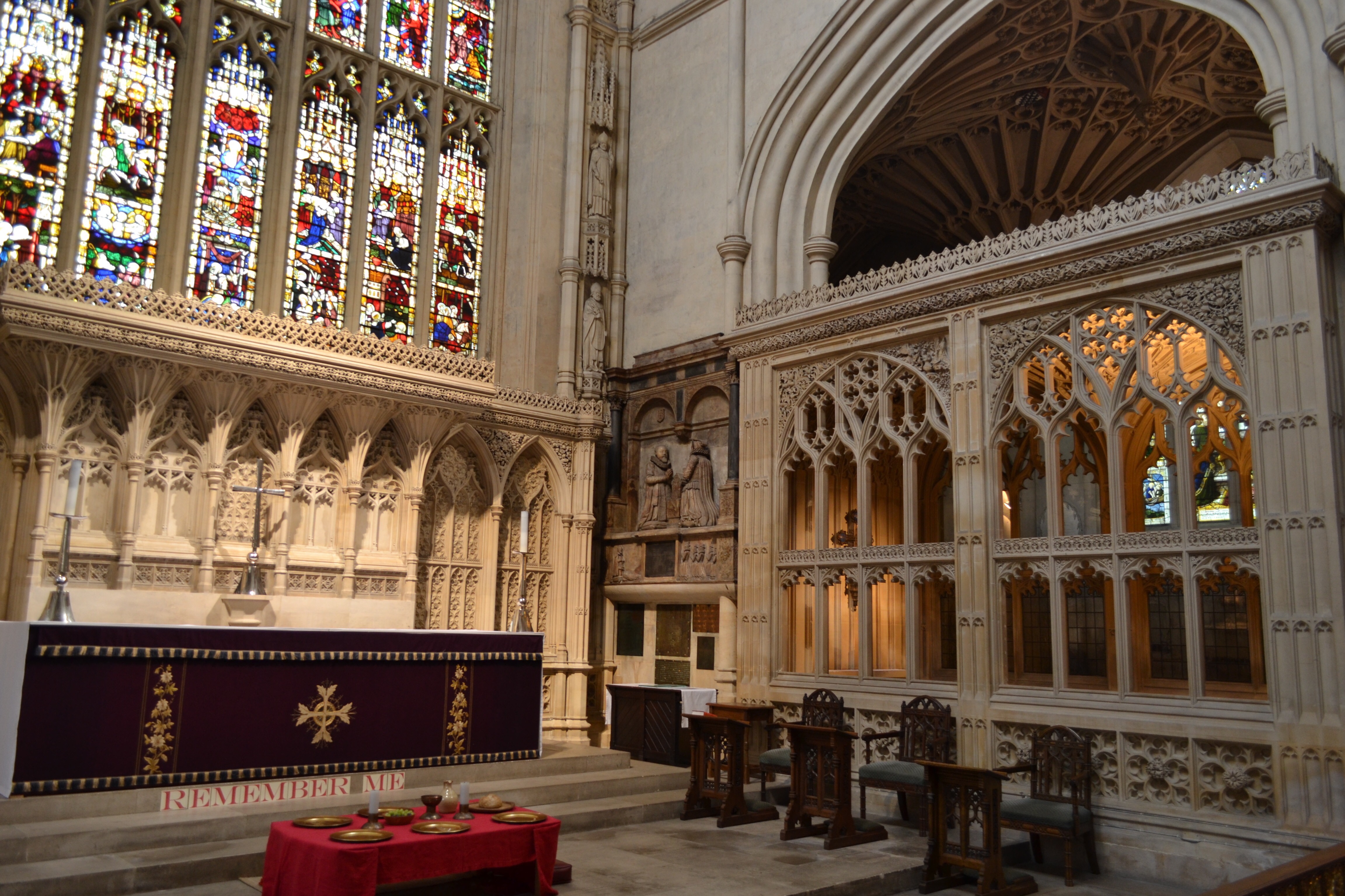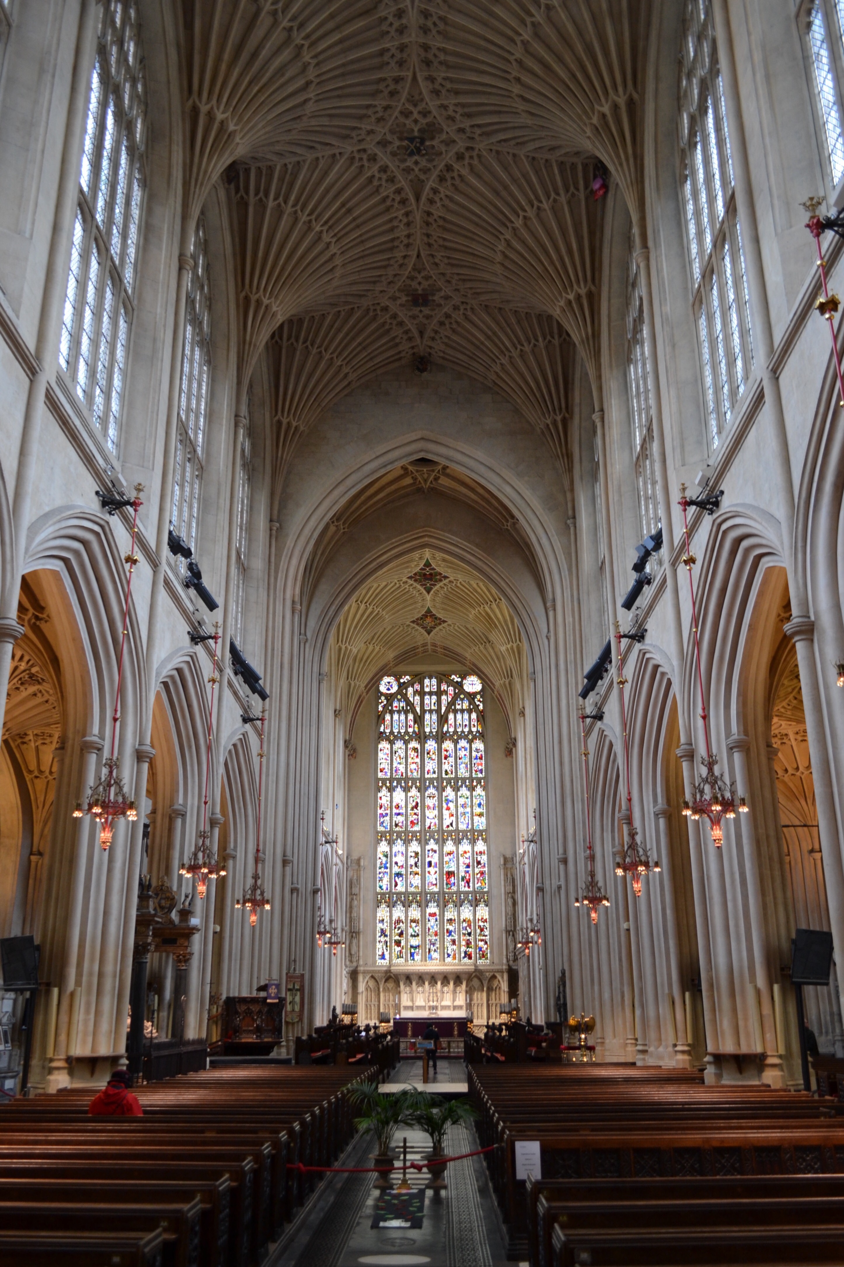 Comme on peut le voir , Bath Abbey est juste à côté des bains, avec la Pump Room dans le prolongement. La Pump Room doit son nom, vous allez rire à une pompe, qui permet de prendre directement son verre d’eau infecte. Elle était très mode du temps de la régence, mais on y reviendra plus tard. Non parce que sinon, on s’éparpille et ça fait fouilli. On en était à Bath Abbey, ou plus exactement l’Abbey Church of Saint Peter and Saint Paul. Elle a été fondée au 7eme siecle mais a été entierement reconstruite par les normands dans un premier temps puis au 12ème et encore une fois au 16eme. Bath Abbey est aussi connue pour avoir abrité le couronnement de Edgar, premier roi des anglais (King of the English) en 973.