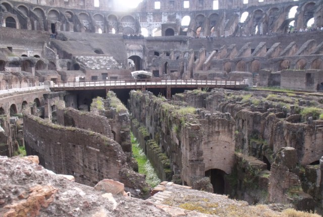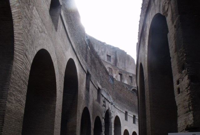 On a fait comme tous touristes et on a été voir le Colisée. C’est impressionnant le nombre démentiel de gens qui visitent ça, alors que d’après WizzBoy, c’est une arnaque. Ce château est tout broken, et on lui avait dit qu’il y avait des lions dedans, c’est raté. Il a à peine croisé un aigle. C’est une mouette mon chéri. Noooo! It’s an eagle. Ok…à part ça, le Colisée a été construit vers l’an 70, sous l’empereur Vespasien et oui, WizzBoy voulait faire pipi. Il n’est pas rond, mais ovale (le forum, pas WizzBoy qui est plutôt bondissant, physiquement) et accueillait en moyenne 65 000 enthousiastes pour des spectacles charmants certes, mais un chouïa sanglants et gores aussi. Wizzboy a trouvé ça très surfait, heureusement, ses frères et sœurs ont été impressionnés.