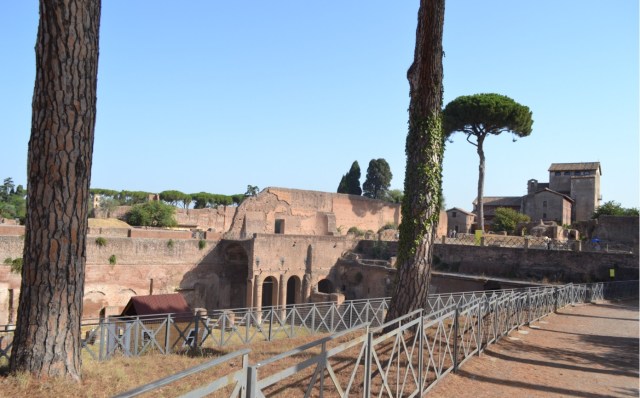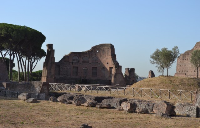 On termine pour aujourd’hui avec la colline Palatine. On y accède par la même entrée que pour le forum, mais il faut monter ce qui permet à la fois un point de vue magnifique sur Rome et d’éviter le gros des touristes, qui restent agglutinés en bas. Le site est immense et magnifique mais j’ai dit que je n’allais pas recopier mon guide. La colline palatine se vante d’être le berceau de Rome et elle est vite devenue le quartier chic, où les empereurs faisaient construire leurs palais. J’aime beaucoup, surtout qu’à l’ouverture, il n’y a pratiquement personne. WizzBoy a adoré courir partout au milieu des ruines comme un dératé, pas du tout ému de fouler le même sol que des romains deux mille ans avant lui. De toute façon, il n’y avait pas de lion non plus…
