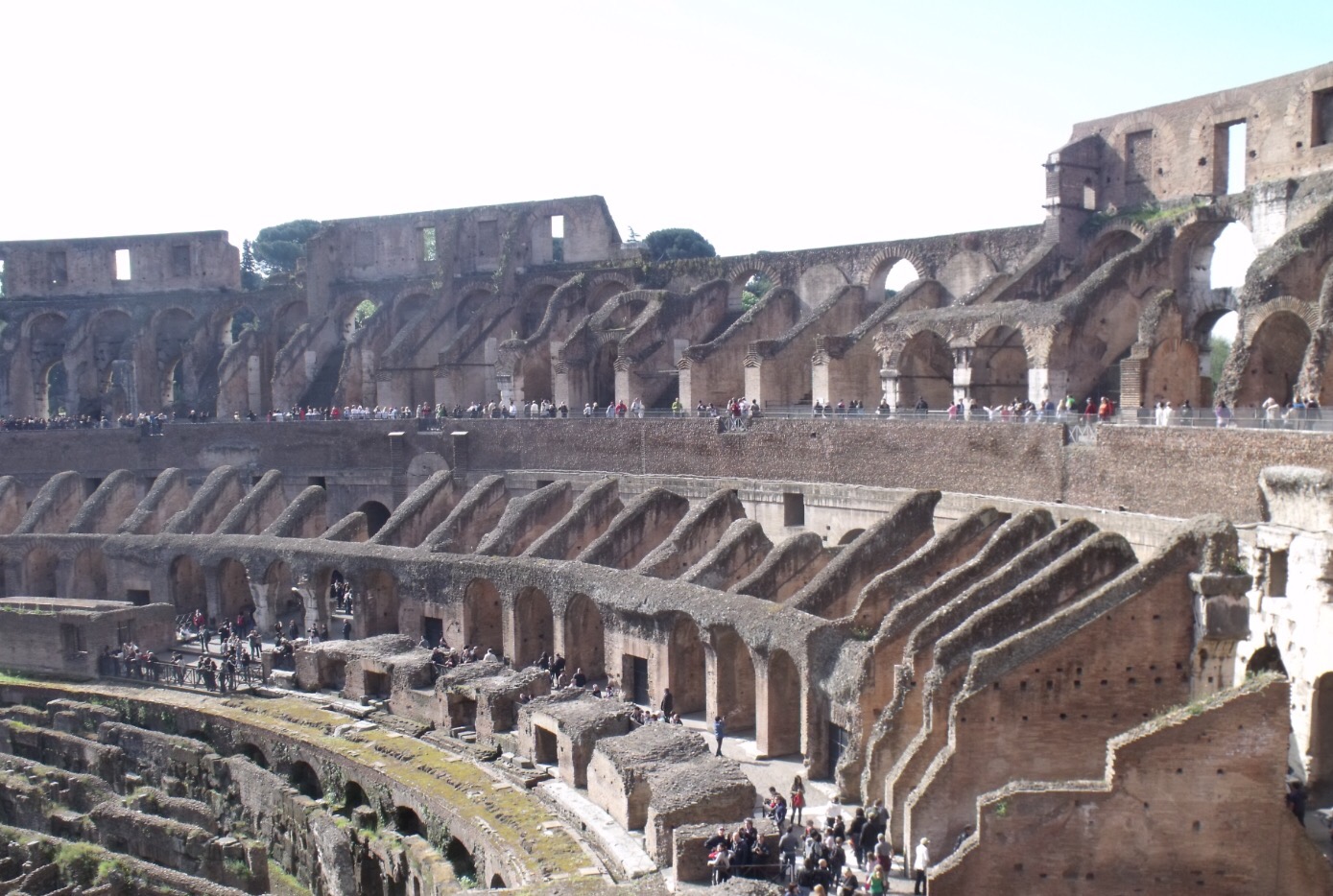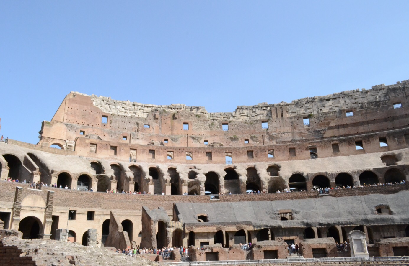 On a fait comme tous touristes et on a été voir le Colisée. C’est impressionnant le nombre démentiel de gens qui visitent ça, alors que d’après WizzBoy, c’est une arnaque. Ce château est tout broken, et on lui avait dit qu’il y avait des lions dedans, c’est raté. Il a à peine croisé un aigle. C’est une mouette mon chéri. Noooo! It’s an eagle. Ok…à part ça, le Colisée a été construit vers l’an 70, sous l’empereur Vespasien et oui, WizzBoy voulait faire pipi. Il n’est pas rond, mais ovale (le forum, pas WizzBoy qui est plutôt bondissant, physiquement) et accueillait en moyenne 65 000 enthousiastes pour des spectacles charmants certes, mais un chouïa sanglants et gores aussi. Wizzboy a trouvé ça très surfait, heureusement, ses frères et sœurs ont été impressionnés.