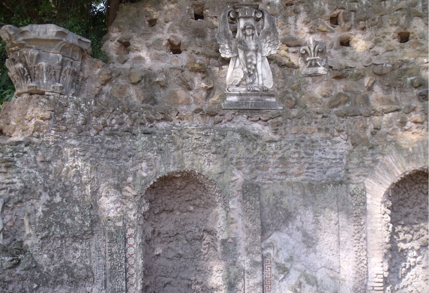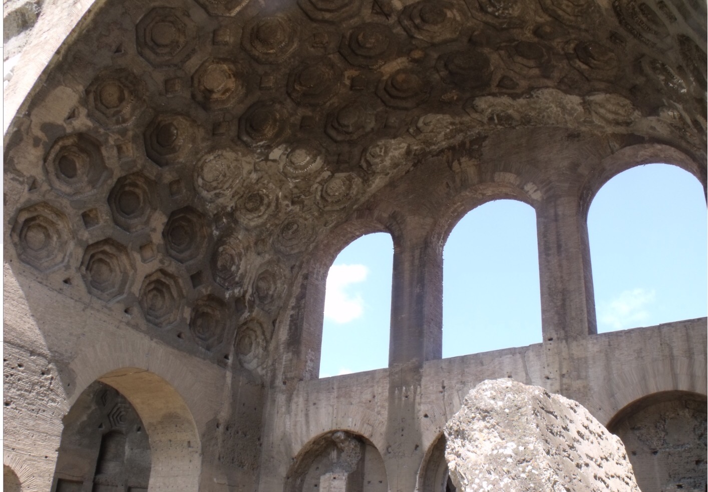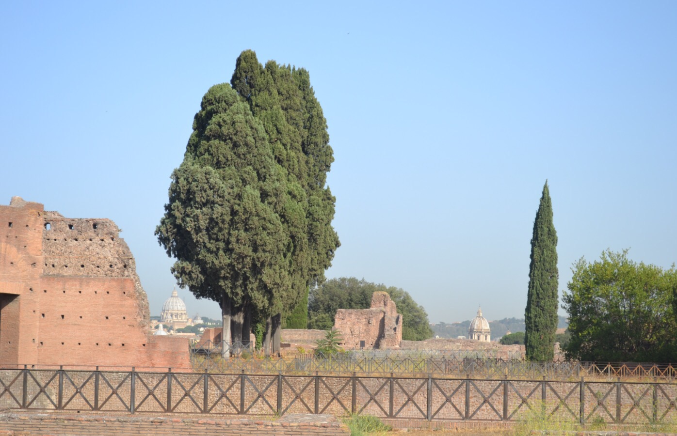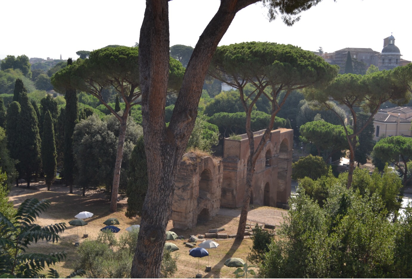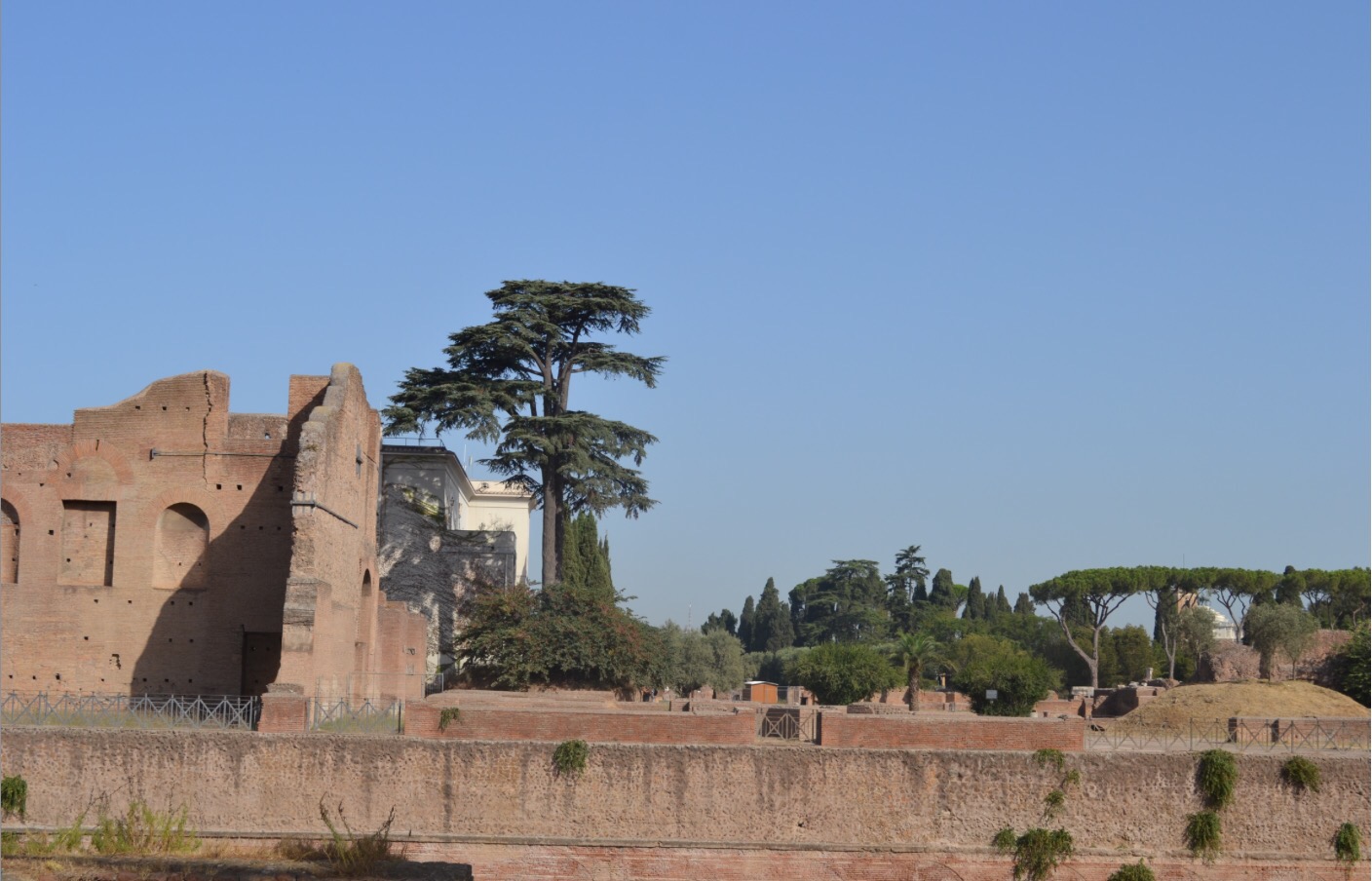 On termine pour aujourd’hui avec la colline Palatine. On y accède par la même entrée que pour le forum, mais il faut monter ce qui permet à la fois un point de vue magnifique sur Rome et d’éviter le gros des touristes, qui restent agglutinés en bas. Le site est immense et magnifique mais j’ai dit que je n’allais pas recopier mon guide. La colline palatine se vante d’être le berceau de Rome et elle est vite devenue le quartier chic, où les empereurs faisaient construire leurs palais. J’aime beaucoup, surtout qu’à l’ouverture, il n’y a pratiquement personne. WizzBoy a adoré courir partout au milieu des ruines comme un dératé, pas du tout ému de fouler le même sol que des romains deux mille ans avant lui. De toute façon, il n’y avait pas de lion non plus…