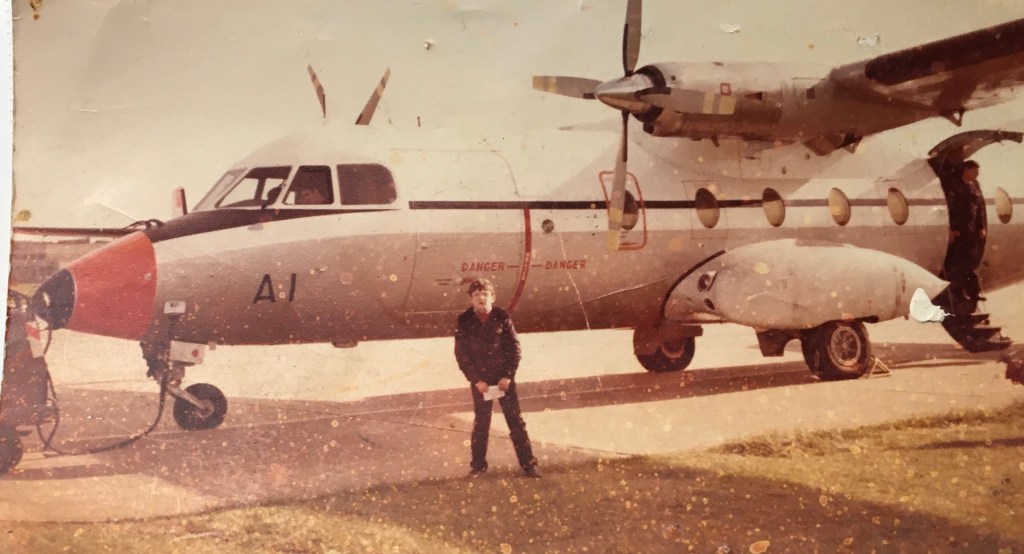 La photo date d’il y a quelques décennies années. Grâce à son papa qui était dans l’armée de l’air, un petit Marichéri (qui était déjà grand de taille) de l’âge de Wizzboy aujourd’hui, pose fièrement sur la base de Villacoublay devant un avion militaire dont le nom lui échappe maintenant. Il était très content en tout cas, et ça reste un souvenir tellement marquant que la photo le suit toujours et a orné tous nos frigos successifs.