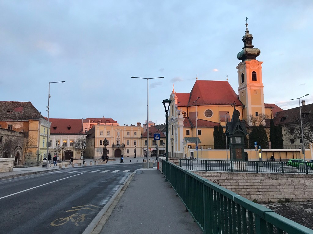 La mairie est impressionnante, surtout de nuit quand elle est toute illuminée. Mais il n’y a pas que ça à voir. Ça vaut la peine de se balader dans les rues pavées de la vieille ville, d’admirer le palais Széchenyi sur la place du même nom et l’évêché, ou d’aller voir la basilique de notre dame de l’assomption (j’ai renoncé à mettre le nom en hongrois, mon correcteur d’orthographe est au bord de la crise de nerfs).