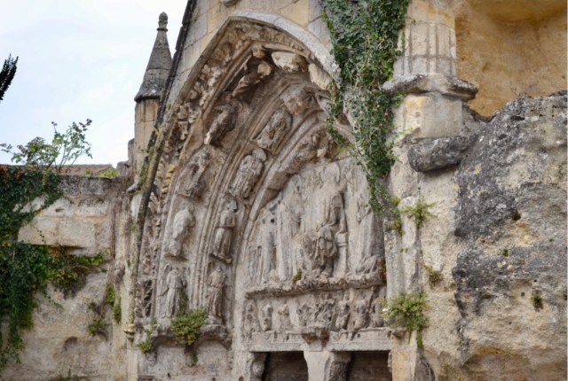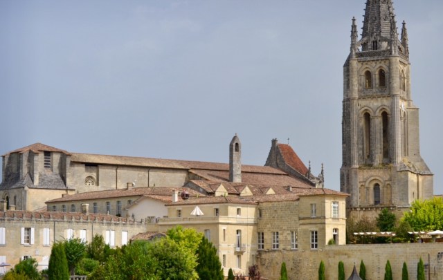Ce n’est pas la seule église de Saint Emilion. Il y a aussi l’église collégiale qui est un des premiers bâtiments que les touristes croisent, puisqu’on se gare en contrebas, le long des remparts. De l’autre côté, il y a le joli musée de la préhistoire, et si on rentre dans la ville, l’office de tourisme qui permet d’accéder au cloître. La première fois que je me souviens d’y avoir mis les pieds (c’est sûrement arrivé avant) j’avais 8 ou 9 ans. Mon papi m’y avait amené, juste moi et m’a fait une de ses merveilleuses leçons d’histoire. Il était instituteur à la retraite, passionné par l’histoire et il faut bien le dire, un chouïa chauvin fier de son coin de France. Il avait un talent fou de conteur et cet été là, il m’a raconté l’histoire, église par église, pierre par pierre comme aucun manuel scolaire, aucun prof n’a jamais été capable de le faire. L’église collégiale date du douzième, c’est une merveille d’architecture Romane qu’il est impossible de prendre en photo correctement vu l’embouteillage permanent de cars de touristes devant. Le cloître a été ajouté au quatorzième, mais les deux conservent encore des traces des fresques murales d’origine.