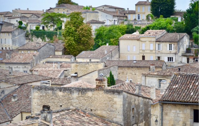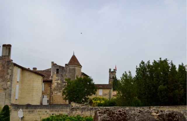 On aperçoit sur la photo au dessus la tour du roi, ancien donjon datant de Henry III Plantagenêt, c’est à dire anglais. C’est du haut de cette tour, construite vers 1237 que la Jurade annonce les vendanges en septembre depuis 1948. Cette confrérie issue du moyen âge, a d’ailleurs elle aussi été créée par un roi anglais, John soit Jean Sans terre en Français (celui de robin des bois).