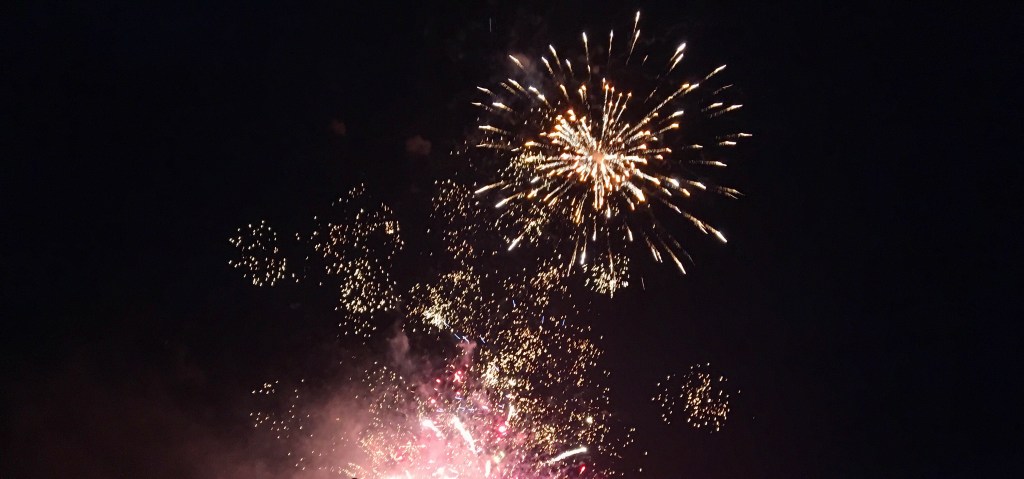 Loulous: L’Ado est proche du but, plus qu’une soixante de kilomètres avec Santiago. Il a même reçu une coquille officielle et tout, il était très fier. Il a aussitôt fait une photo pour nous la montrer. Juste avant de la laisser tomber et de la casser. GeekAdo, inspiré par les exploits sportifs de son frère, s’est mis au vélo. C’est un scandale, il y a un buisson qui a déboulé de nulle part, sans clignotant, et qui lui a barré la route. Quel chauffard alors, ce buisson. GeekAdo va bien à part quelques égratignures et le buisson aussi. MangaGirl et PrincesseChipie ont adoré le feu d’artifices. Les airs blasés de la grande ont disparu à coup de « hiiiiii, c’est joliiiii » qui nous ont beaucoup surpris, on n’est plus habitué à autant d’enthousiasme de la part d’une ado mi goth, mi emo, mi artiste maudite. PrincesseChipie était à fond avant que ça commence, elle a donc poussé des cris de joie en ultrasons, mais avec elle, on s’y attend. Wizzboy lui n’a pas eu peur. Enfin, il a répété qu’il n’avait pas peur en boucle, en me broyant la main, en se crachant derrière GeekAdo puis planqué dans la voiture avec son père qui faisait des photos artistiques, artistiquement en biais appuyé sur une portière, pour faire de l’art. Si. Enfin bref, Wizzboy n’a pas eu peur. Voilà.