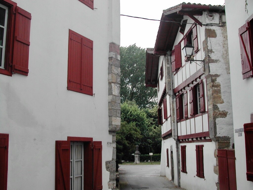 Le thème choisi cette semaine par Ma’ est assez difficile pour quelqu’un qui a passé plus de 20 ans dans des pays où, justement, il n’y a pas de volet aux fenêtres. En Irlande et en Angleterre, le soir, on ferme les rideaux. Depuis qu’on est en France, MangaGirl fait de la résistance et refuse de fermer son volet, elle continue à tirer les rideaux car il y a bien des volets dans notre nouvelle région (le Nord Pas de Calais), mais il s’agit de volets roulants. Il n’y en a qu’un seul par fenêtre, rien à voir avec les lourds volets de bois que je détestais fermer quand il pleuvait quand j’étais enfant. Il fallait que je grimpe sur le bureau de ma chambre, que je me penche à moitié dehors dans le froid et la pluie et que je ramène les battants tant bien que mal sans me vautrer, avec ma grace natuerelle, dans la plate bande en dessous. Tout ça pour dire que je n’ai pas de volet photogénique dans mon entourage proche. Mais comme ça m’a fait penser aux volets de mon enfance (franchement, où ça va se fourrer, la nostalgie quand même!), j’ai fouillé les archives photos pour trouver des volets en bois et même des volets basques, bien rouges et sûrement lourds.