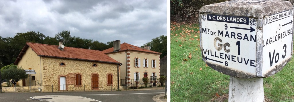 Bougue, à côté duquel je suis donc passée sans le voir pendant toute mon adolescence, est un petit village comme il y a tant. On peut y passer sans s’arrêter, il peut paraître banal, dans sa simplicité, alors que pourtant, il y a toute l’histoire de la région rassemblée : mottes féodales, chemins de saint Jacques, guerre de 100 ans, forêt primitive (celle d’avant les pins, plantés au dix neuvième), l’église sur la place du village typique des landes…Mes petits anglais et Marichéri étaient sous le charme. Et je me suis demandée combien j’en avais loupé, de ces petits coins si mignons, pendant mes années boudeuses d’ado…ou alors, c’est parce que je suis partie ailleurs et longtemps et que je ne reviens qu’en touriste, que je redécouvre tout ça avec émerveillement et pas mal de chauvinisme une certaine émotion?