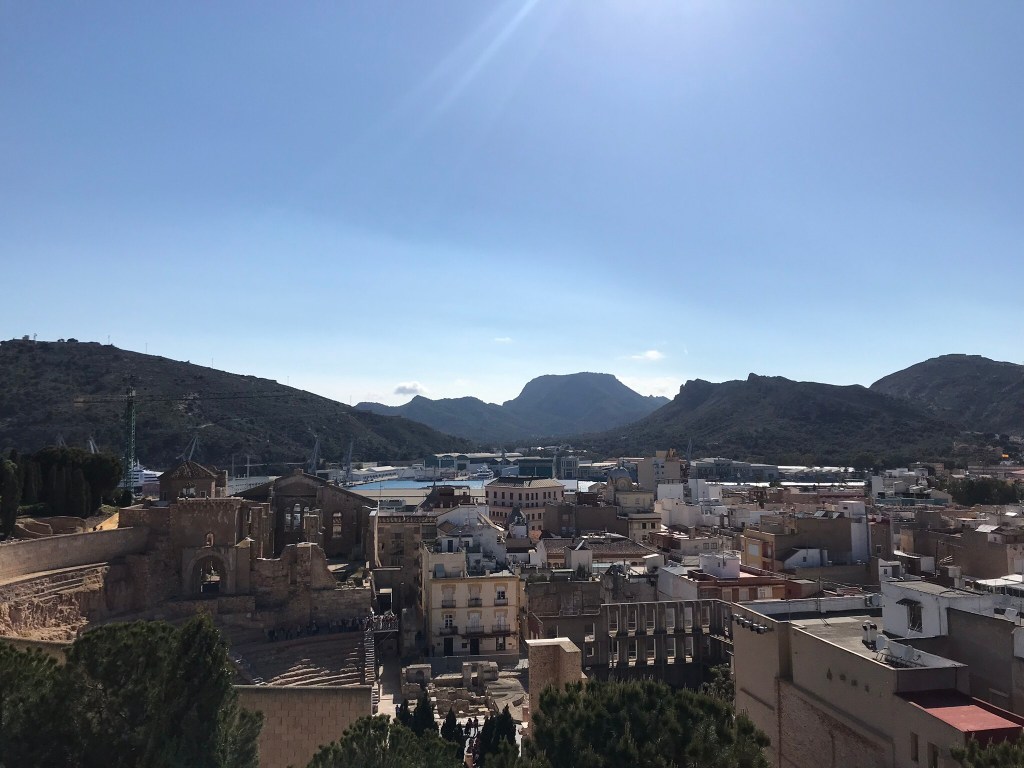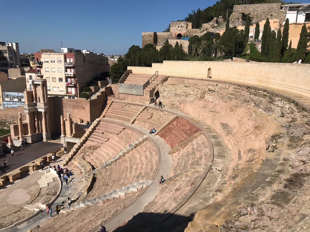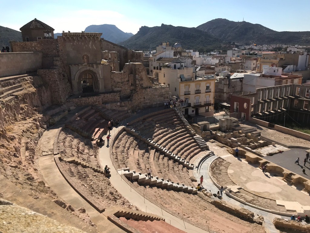 Cette Cartagena se trouve dans la province de Murcie, au Sud Est de l’Espagne, il ne faut pas la confondre avec Cartagena en Colombie! Ce sont les phéniciens qui y ont construit le premier port, et Cartagena est restée très importante pendant toute l’antiquité. On y trouve donc de magnifiques ruines romaines, notamment un superbe théâtre qui date de -5 avant notre ère.