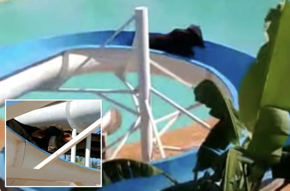 8-Pendant ce temps, toujours en novembre mais au Brésil, une vache s’est échappée de l’abattoir et a été retrouvée en train de s’éclater sur le toboggan de la piscine d’un grand hôtel. Après une telle prouesse aquatique, la vache a été sauve et adoptée comme animal de compagnie. Elle répond maintenant au nom de Tobboga et peut aller nager quand elle veut.