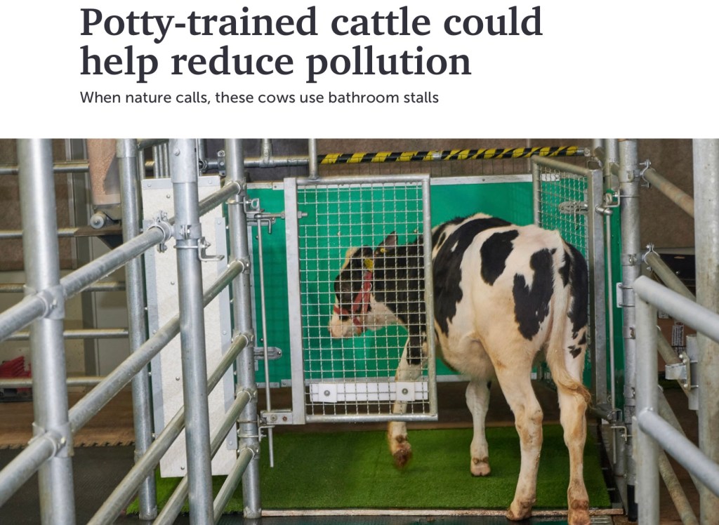 4-en septembre, des scientifiques allemands m’ont fait rêver: ils ont inventé des toilettes pour vaches et affirment qu’on peut leur apprendre à s’en servir! Alors, c’est plus par soucis écologiques que pour m’aider à enfin avoir une vache potty trained, mais je suis ravie.