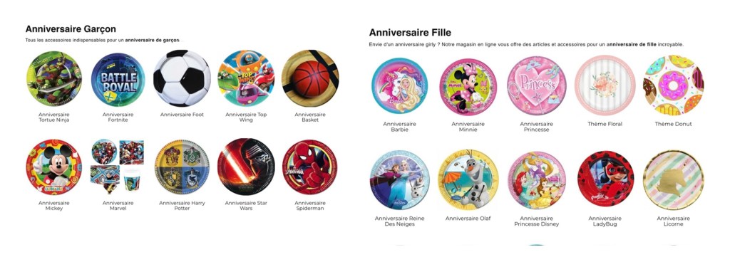 Pour illustrer mon billet sur les 4 ans de notre brexodus, j’ai cherché une image adéquate et je suis tombée sur le site d’une boutique en ligne spécialisée dans les accessoires pour anniversaires. Pourquoi pas, c’est une activité comme une autre, certains ont commencé comme ça et ont même fini par caser leur fille chez les Royals (pour ceux qui se demandent comment les parents de Kate Middleton ont financé sa rencontre presque pas arrangée avec William). Mais j’ai vite tiqué en tombant sur les deux rubriques : anniversaires filles, toute en rose, et anniversaires garçons, toute en bleue. Ah.