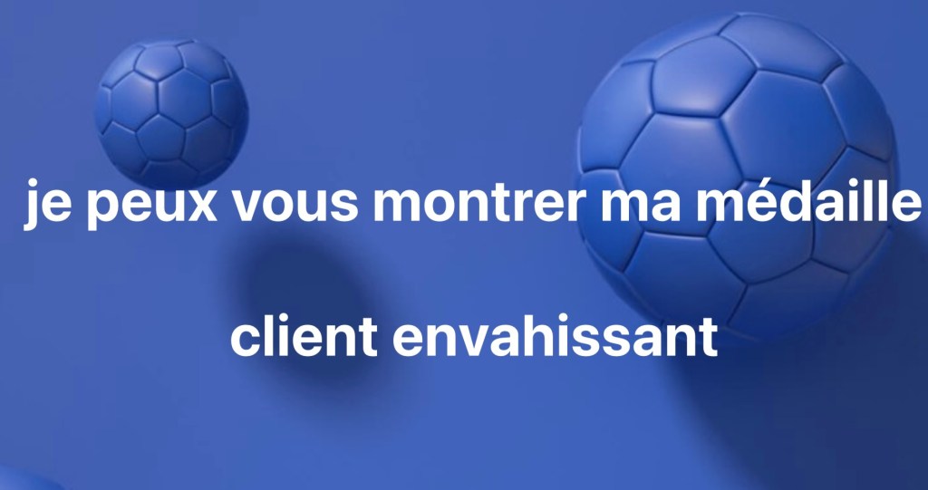 Et il l’a fait! Il a sorti une médaille en plastique comme celles qu’on donne justement aux enfants pendant les kermesses, Le fromager ne savait plus où se mettre. On a donc appris que ce grand sportif était devenu champion départemental la semaine dernière, mais on ne sait pas de quoi, et qu’il s’attaque à la compétition régionale ce week end. Il a promis de raconter au fromager qui essayait de rester poli et passait ses nerfs sur un livarot innocent.