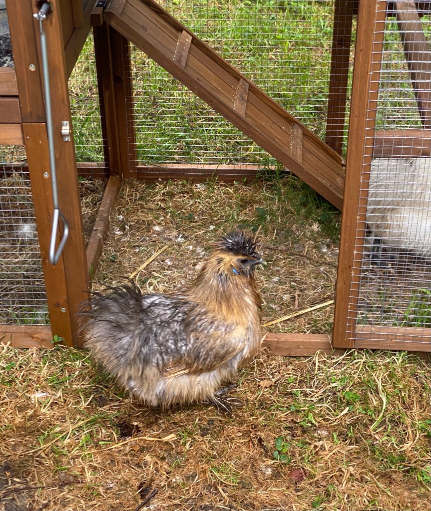 Divers: apparemment, une poule ne pense pas toute seule à se mettre à l’abri quand il pleut. Et une poule mouillé, c’est rigolo, visuellement.