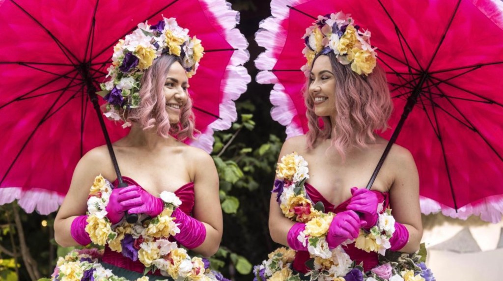 3- Au Chelsea flower show, il y a aussi des créations professionnelles. Alors certes, le buisson sur la tête de la pauvre fille là, c’est sûrement de l’art, mais je préfère les chemises des deux artistes. C’est choupinou, ou à vomir, je ne sais plus.