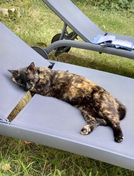 Une semaine de vacances scolaires à attendre les « vraies » vacances et le départ en famille, c’est plutôt calme. Cette semaine passée, on a tous profité du soleil, y compris Marcel qui squatte une chaise longue et refuse de céder la place.