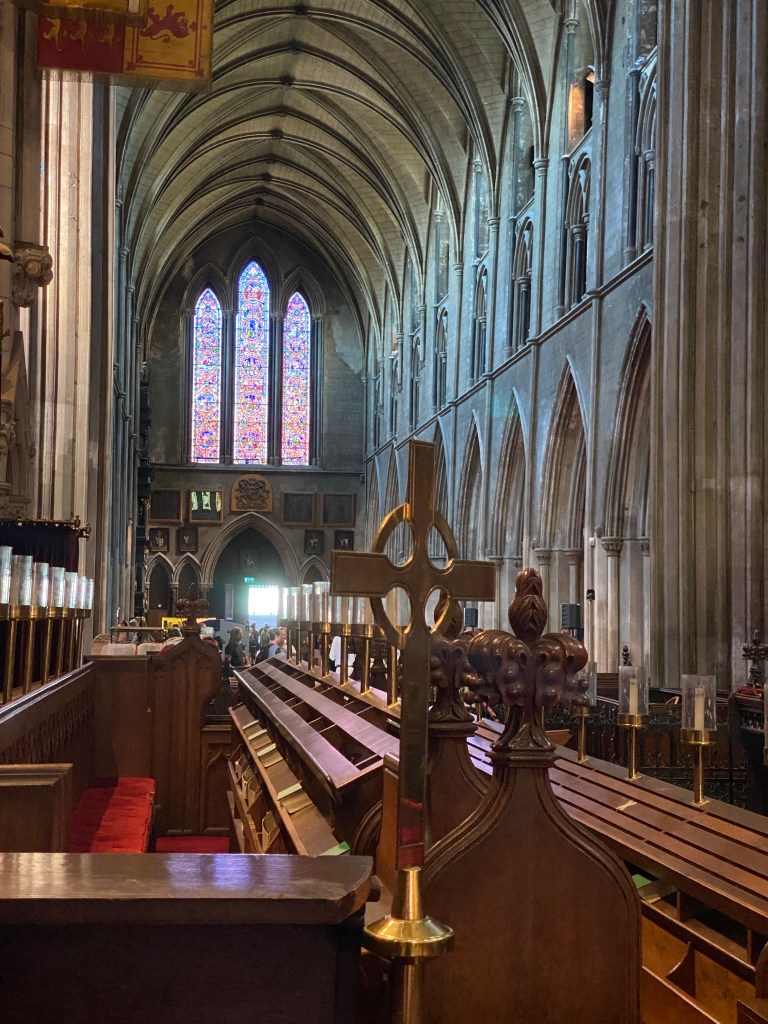 Avant les problèmes conjugaux et pécuniaires de Henry VIII, Saint Patrick’s cathedral accueille tranquillement les locaux comme les anglais colonisateurs, tout va bien (à peu près). Et puis, Henry décide de réformer tout ça, et la cathédrale devient protestante et n’est même plus cathédrale. Elle tombe presque en ruine jusqu’à l’arrivée de réfugiés huguenots français qui certes entament des réparations, mais n’y restaurent évidemment pas le catholicisme, religion des colonisés irlandais.
