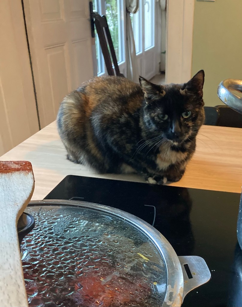 Marcel a pris des leçons de cuisine…je ne sais pas ce qui l’attire le plus: la chaleur ou la nourriture.
