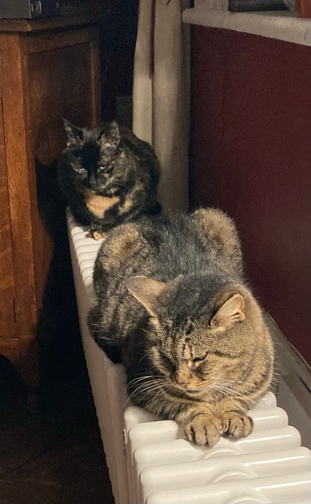 Et cette semaine, comme je le disais au début, la météo a été tellement humide que même Capucine et Marcel ont conclu une trêve et sont allés se réchauffer sur le même radiateur, sans dispute. C’est un événement.