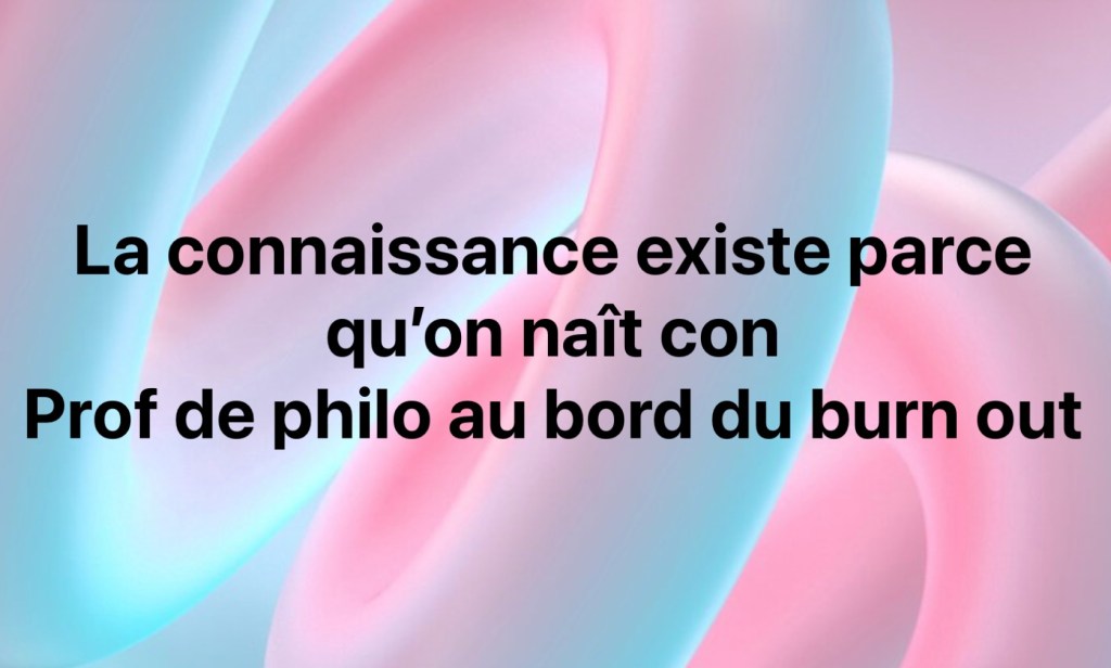 Eh bien,je trouve que cette sentence est très profonde mais je n’aurais pas parlé de connaissance ,plutôt d’apprentissage , de leçon , et en filigrane la prof se félicite de devoir exister . Nan?