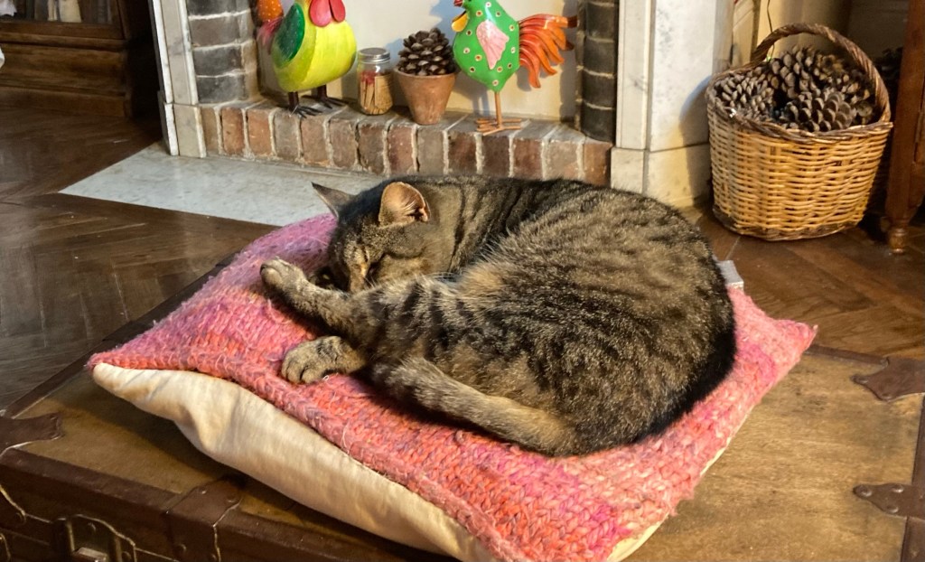 Pic: je ne suis pas jalouse des chats, pas du tout…en plus Capucine ne peut pas dormir tranquille sans qu’on la dérange, mais elle se vengera, c’est très net.
