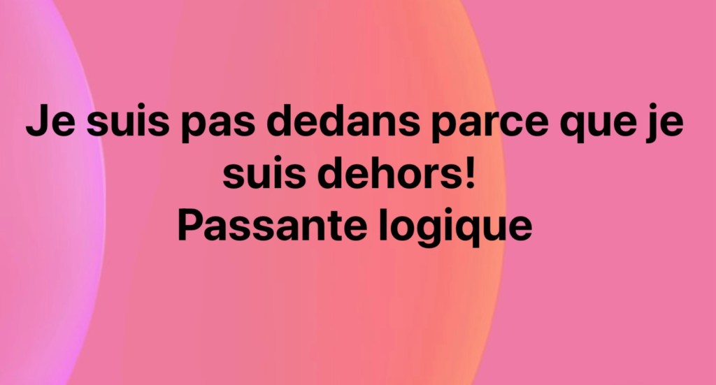 Le principe de cette rubrique, c’est de collectionner des bribes de conversation entendues par hasard dans la rue, à l’école, chez les commerçants et qui m’inspirent, m’émeuvent ou m’amusent. Cette semaine, j’ai croisé (en allant à la pâtisserie, mais ça n’est pas le sujet) une dame dans la rue, qui s’énervait toute seule au téléphone. J’étais pressée, je n’ai fait que passer mais j’ai eu le temps d’entendre cette réflexion d’une logique implacable: