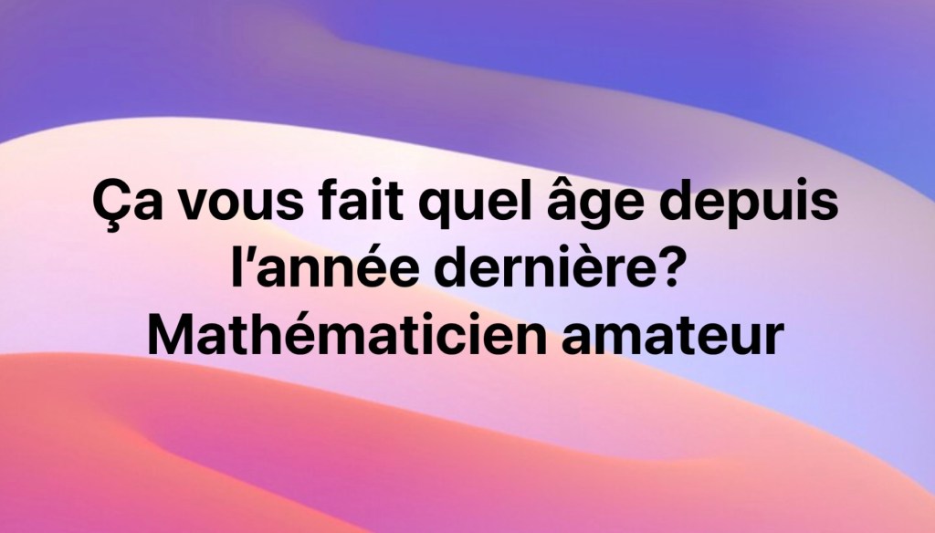 Eh bien, vous allez rire, j’ai exactement un an de plus! Mais j’ai vraiment beaucoup aimé cette façon originale de me demander mon âge (que je n’ai pas donné, mais ça n’est pas le propos).