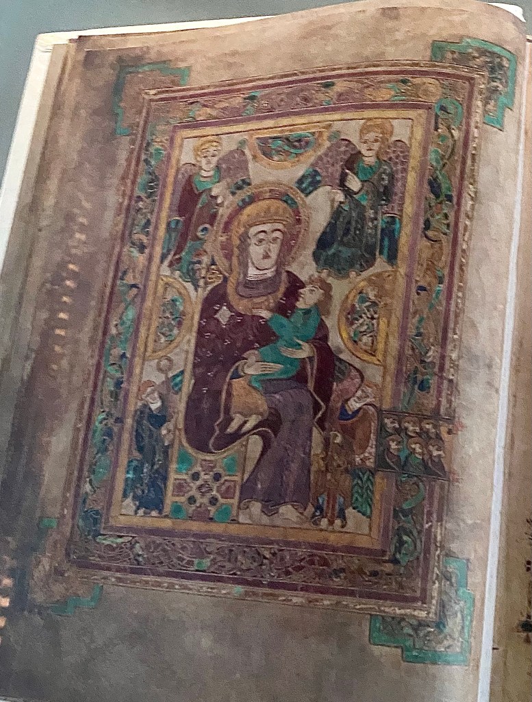 Pour le thème choisi cette semaine par Ma’, j’ai choisi de jouer sur les sens du mot « iconique ». Voici donc une image religieuse (la vierge et l’enfant), qui n’est pas sur bois mais resemble bien a une icône. Elle vient du célèbre book of Kells, qui est bien une icône de la culture irlandaise. C’est un manuscrit enluminé absolument sublime du neuvième siècle qu’on peut admirer dans la bibliothèque de Trinity Collège à Dublin.