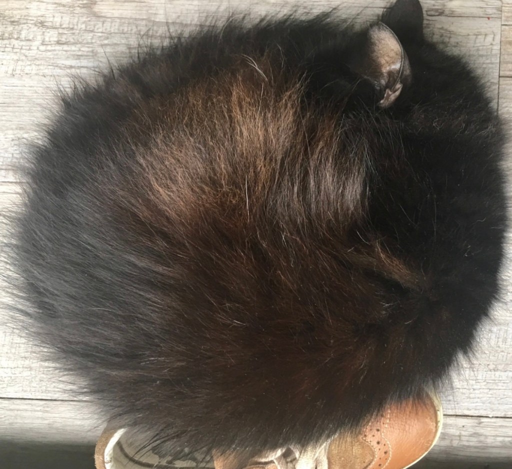 Penny, surnommée le coussin ou le blob, capable de rester des heures où on l’avait posée, ne bougeant ni devant l’aspirateur, ni devant Capucine qui n’a jamais été aimable, non par courage mais par inconscience totale. Penny, incapable de faire quoique ce soit, qui a été fichue de se rendormir au milieu de la chatière quand on a essayé de lui apprendre. Penny qui continue à dormir dans sa flaque après s’être fait pipi dessus dans son sommeil. Penny ou la vacuité, Penny au physique et au cerveau de peluche. Pas d’instinct, mais décorative. 7 ans comme ça, à être totalement amorphe, à ne jamais chasser un mulot ou un jouet, à avoir peur de marcher dans l’herbe, à avoir peur de marcher tout court, mais aussi 7 ans de caresses subies ou appréciées, on ne sait pas trop, vu son absence de réaction.