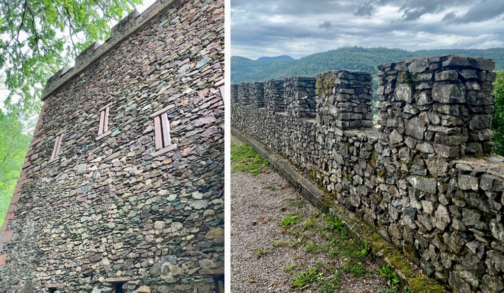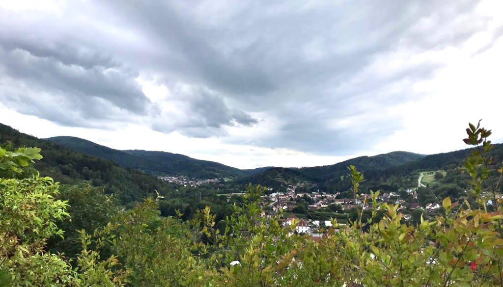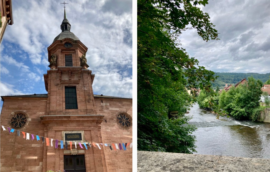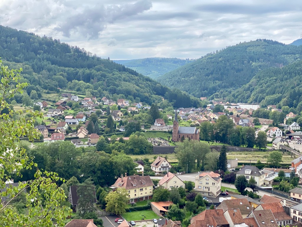 La petite ville de Schirmeck annonce fièrement partout à tous les visiteurs qu’elle possède un château fort et on l’aperçoit bien tout là haut, dominant les alentours. C’est juste qu’on ne trouve pas le sentier pour y monter. En même temps, ça nous a permis de visiter le bourg, à la recherche de ce fichu sentier, et d’admirer la petite église.
