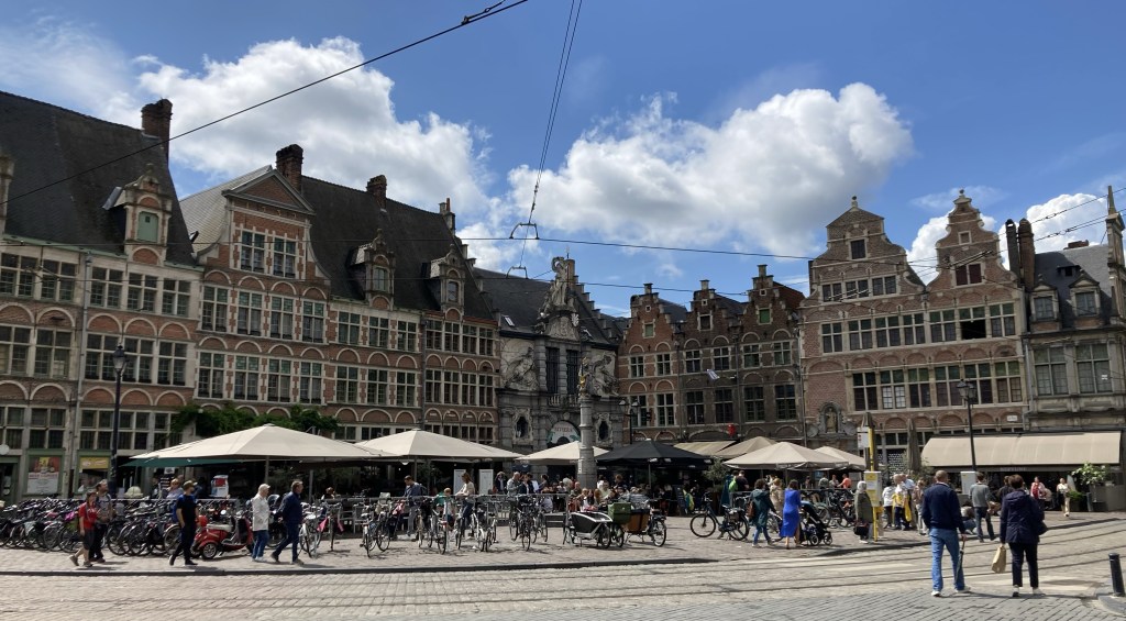 Évidemment, il y a des canaux partout, et la ville est charmante. Gand est la capitale de la province de Flandres Orientale (c’est la qu’est ne Charles Quint). Elle étale son passé de très riche et très flamande cité drapière. Gand a prospéré à partir du douzième siècle, elle a continué jusqu’au seizième et ça se voit! Les palais, les églises et les maisons bourgeoises sont magnifiques.