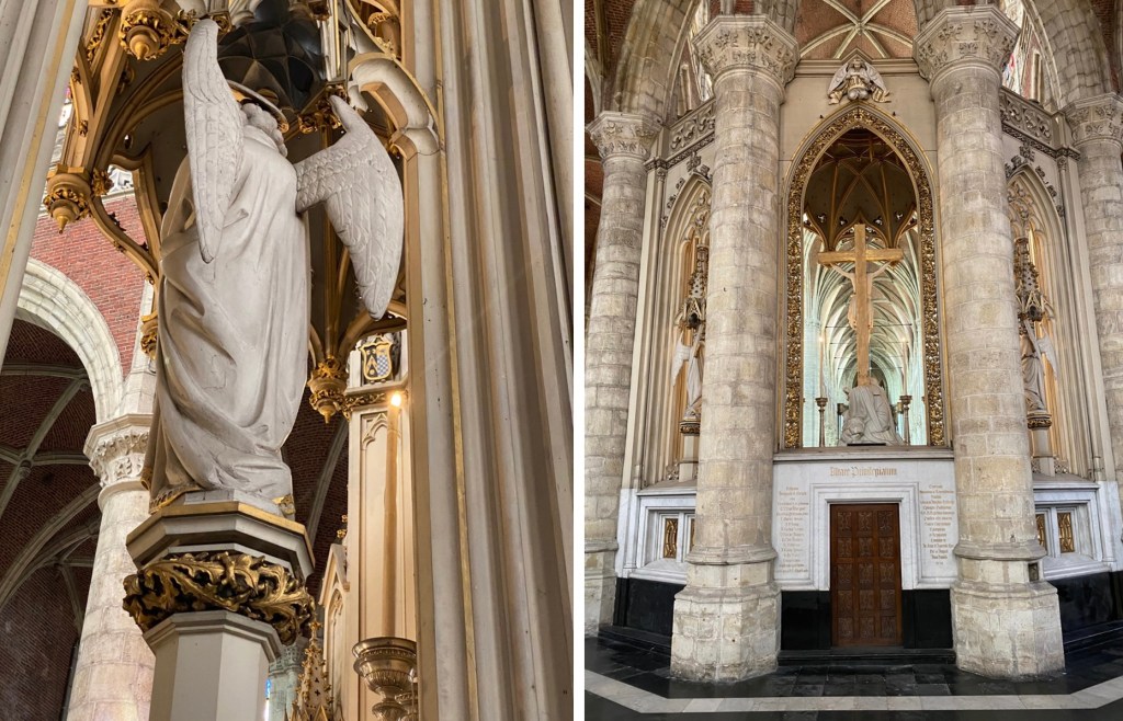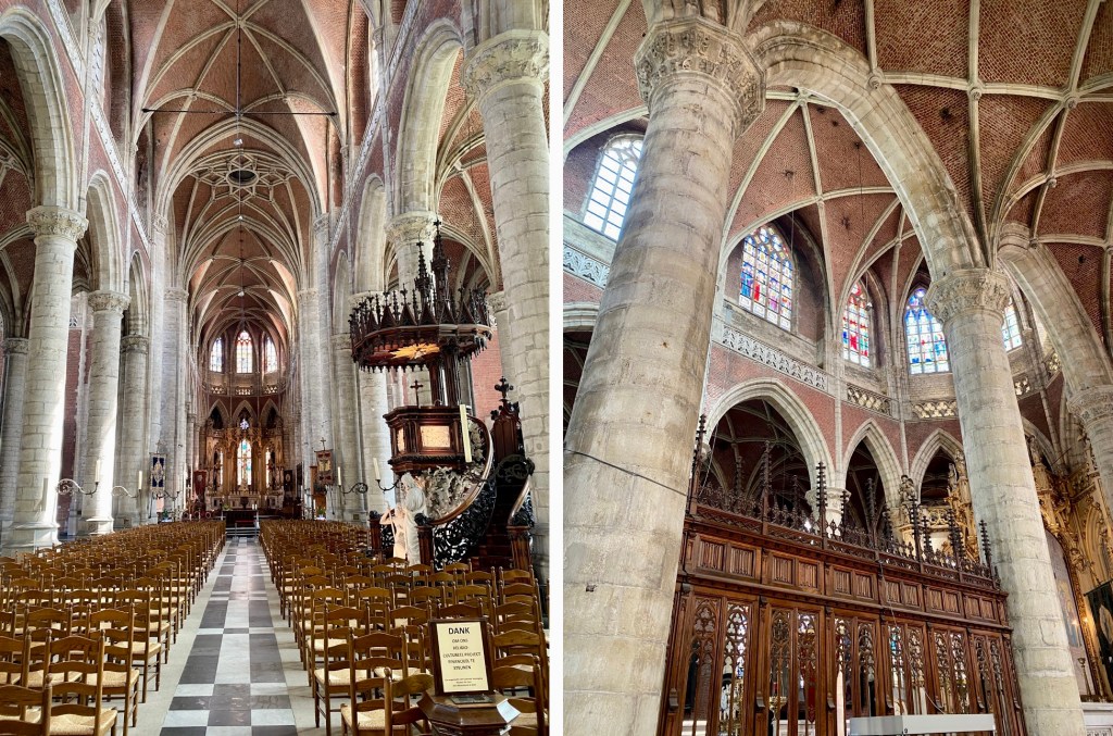 Comme l’église est en plein centre de la vieille ville et qu’il pleuvait, Maricheri n’a pas réussi à faire de jolies photos de l’extérieur. Par contre,, il s’est lâché à l’intérieur. L’église Saint Michel (je n’arrive pas à prononcer le flamand correctement, on va rester sur la traduction pour l’instant) est une merveille du gothique flamand. Elle date de 1440 et a pris la place de la chapelle romane qui occupait les lieux avant un incendie.