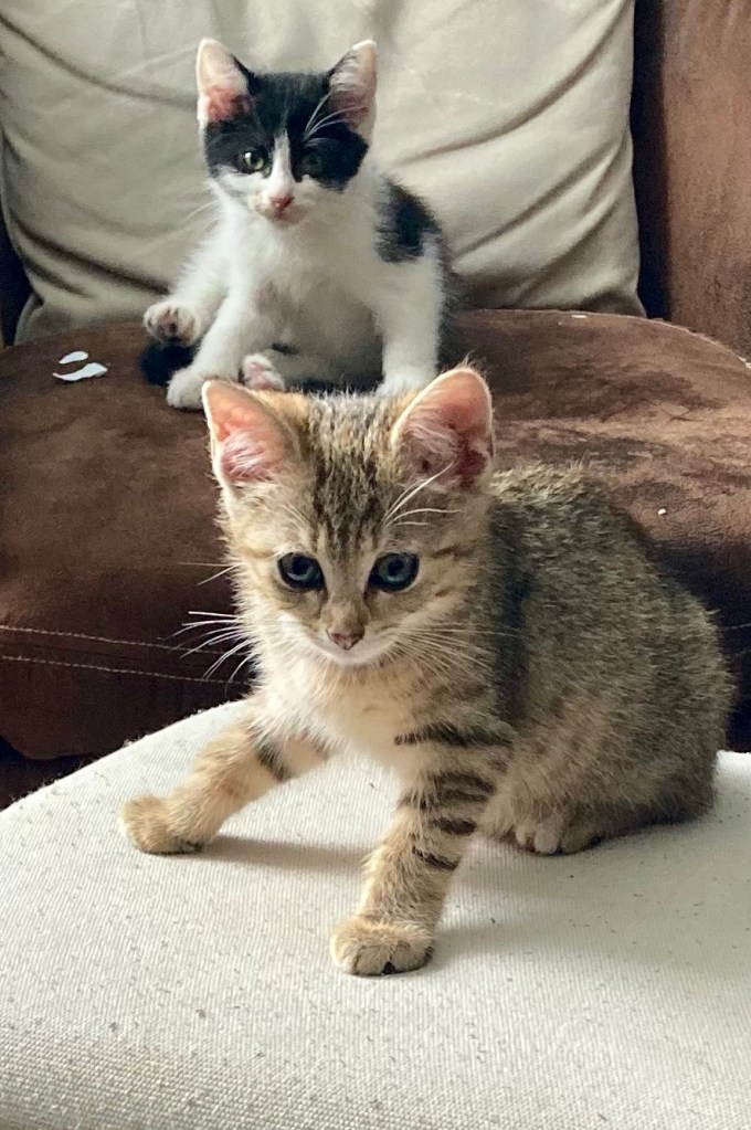 Il se trouve qu’il y a une super association locale qui recueille les chats errants…bref, j’ai téléphoné à tout hasard. Sans penser à rien, juste comme ça, pour les encourager. Voilà qu’ils venaient de trouver une chatte et ses petits. D’habitude, ils n’ont aucun mal à les faire adopter mais manque de chance, un des chatons etait craintif, peureux, récalcitrant aux humains, limite idiot et collé à une de ses sœurs, impossible de les séparer. Et donc, impossible de leur trouver un foyer alors que le reste de la portée est déjà casée. Pas de souci, on les prend!Vous êtes sûrs? Deux à la fois? Absolument et on était même prêt à embarqué la mère avec, mais elle avait déjà été réservée.