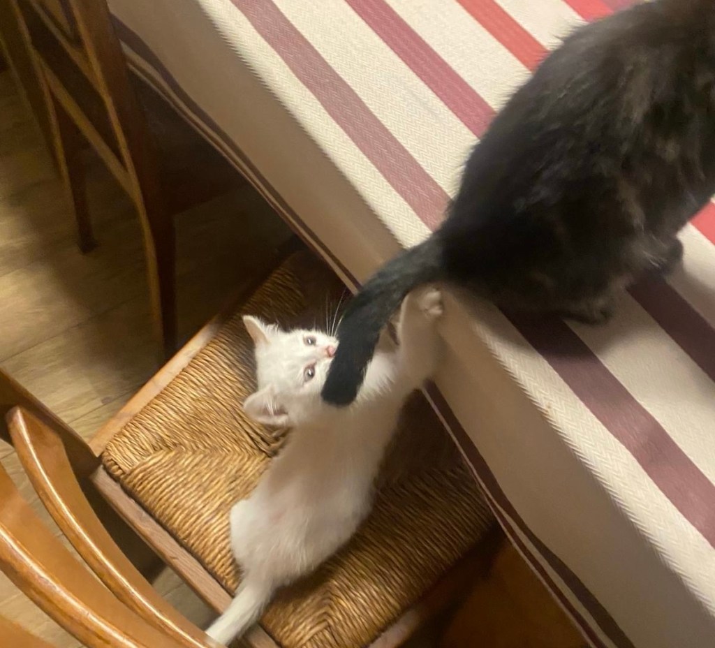 La semaine a été dominée par les chatons, et surtout Isidore qui déploie une énergie inversement proportionnelle à sa taille. Il épuise même sa sœur, Sidonie.