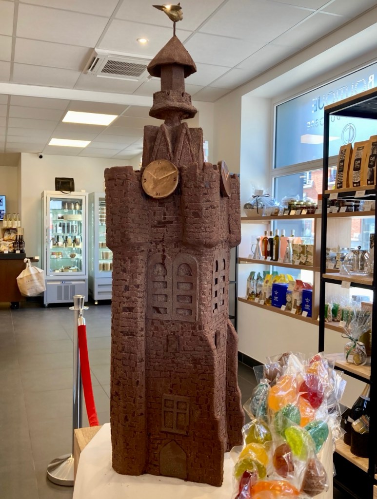 Je n’ai pas fait exprès, mais j’ai pris hier une photo parfaite pour illustrer le thème choisi par Ma’ cette semaine. On était en visite à Béthune dans la boutique du chef Dufosse (2 étoiles Michelin), que je recommande vivement d’ailleurs. Il a eu la bonne idée d’ouvrir une sorte d’épicerie fine et pâtisserie qui a plein de petites choses gourmandes, et pour Pâques, on y trouve ce magnifique beffroi tout en chocolat.