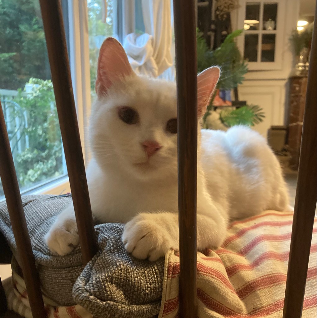 Pic: Non, Isodore n’est pas enfermé, c’est un dossier de chaise…quel comédien!