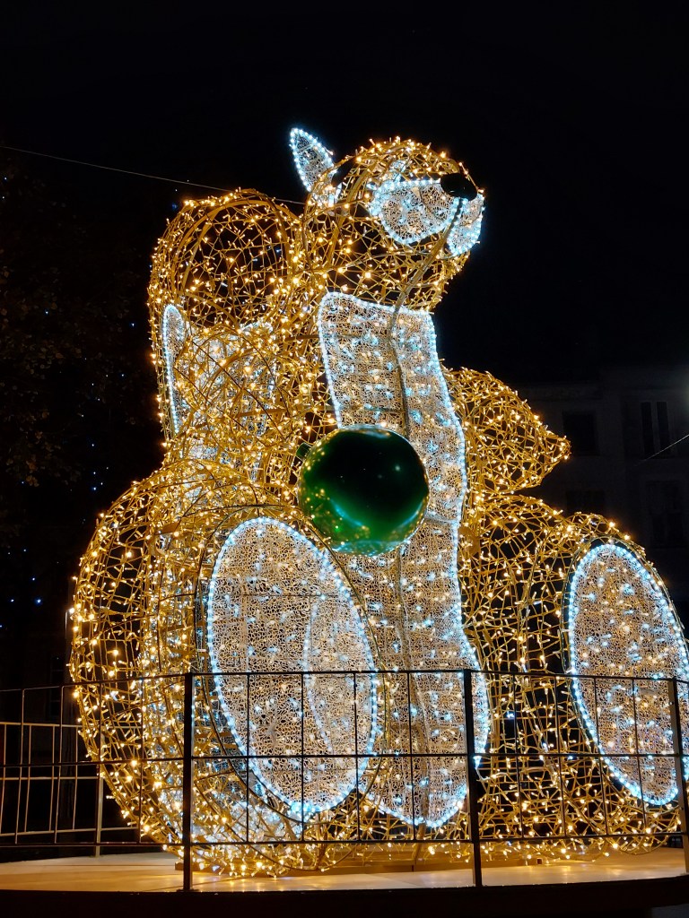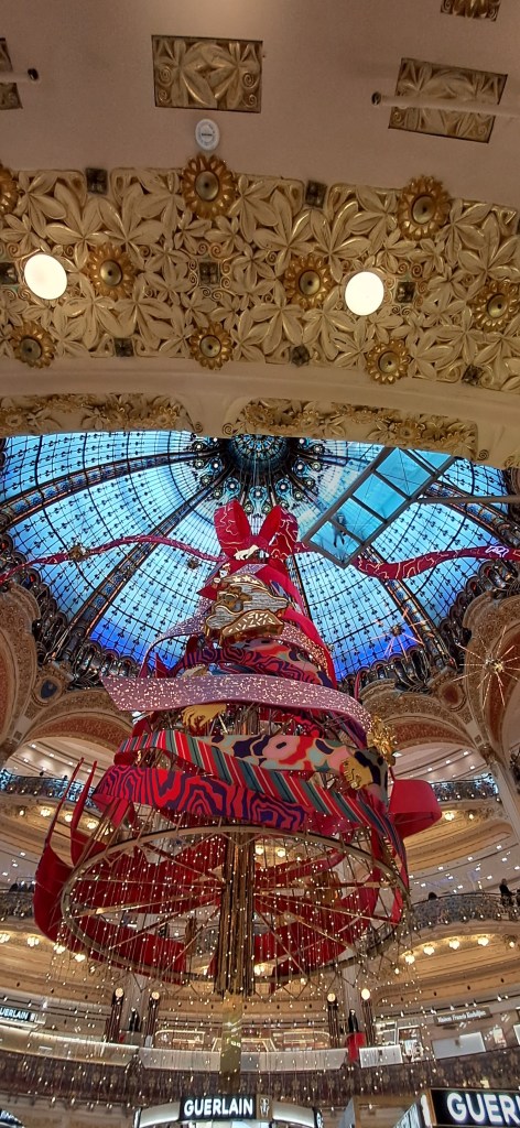 On commence par l’incontournable sapin des Galeries Lafayette à Paris, merci Le Dinosaure.
