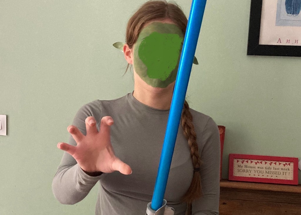 Princessechipie a célébré Star Wars Day (May the 4th, hier donc) comme il se doit, en faisant Yoda toute la journée. J’ai caché son visage avec un peu plus de vert, mais c’est vraiment pour la forme: on ne la reconnaissait pas du tout, elle a même pris la peine de faire des rides en vert plus foncé et des gros sourcils poilus. J’aime beaucoup les oreilles aussi.