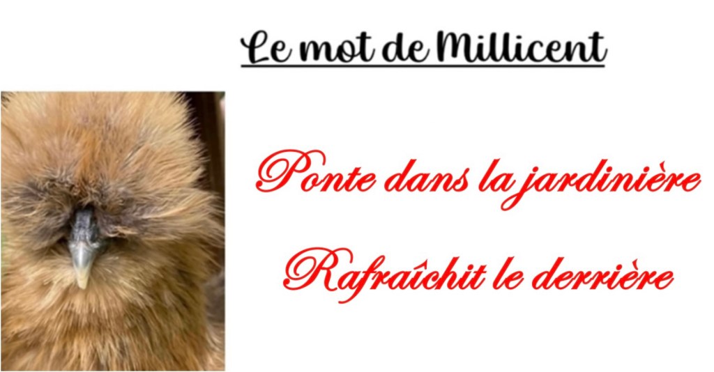 Il y a longtemps que je n’avais pas donné des nouvelles des poules. Eh bien, les poussins de l’été dernier ont grandi: Mildred et Maurice vont très bien. Un peu trop bien même, puisque Maurice saute sur tout ce qui bouge, y compris sa sœur. Cela dit, il attaque aussi sa mère. Et Nestor, l’autre coq (donc le père de Maurice, je ne sais pas si c’est très clair, cette généalogie poulesque) est aussi très content. Bref, les poules pondent et couvent de temps en temps, la preuve, Millicent a un nouveau poussin. Mais bon, là, on va parler de Mildred. Je précise pour les nouveaux que ce sont des poules (et coqs) de soie, c’est à dire des mini poules. C’est important pour la suite.