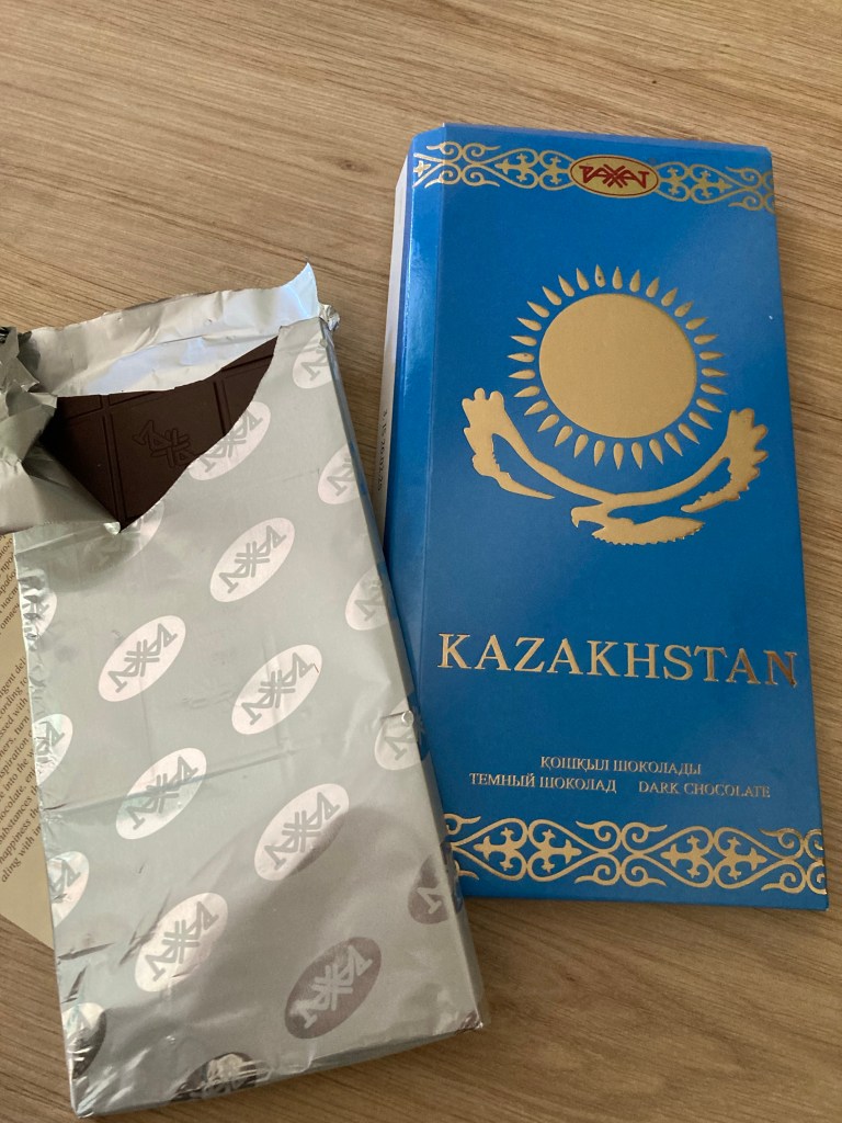 Grâce à Marichéri, qui a des contacts, on a goûté du chocolat du Kazakhstan. C’est une première, j’étais toute excitée mais finalement, je suis un peu déçue. C’est pas mauvais, mais ça n’a rien de particulier non plus.