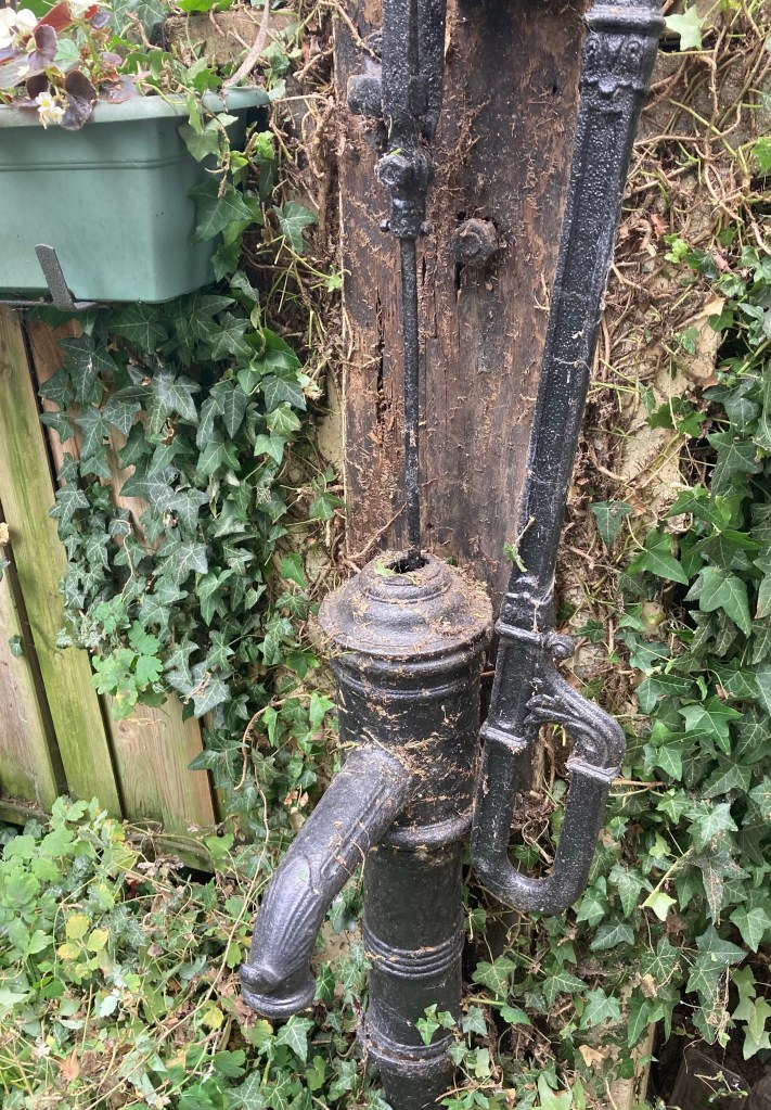 Et on a retrouvé sous des monceaux de lierre, la vieille pompe qui tirait l’eau de la source sous la cave (si,si). C’est en cours de débroussaillage.